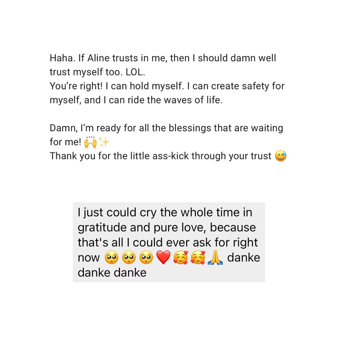 It is for women who want to meet partnership as a sacred mirro, learning to love their man as he is, while rooting safety back into their own body. Through deep somatic connection and nervous system regulation, safety is sourced from within rather than placed onto the relationship, allowing surrender, intimacy, and devotion to arise without co-dependency, and supporting you in becoming a woman who can remain deeply herself inside love - grounded, clear, regulated, and devoted.